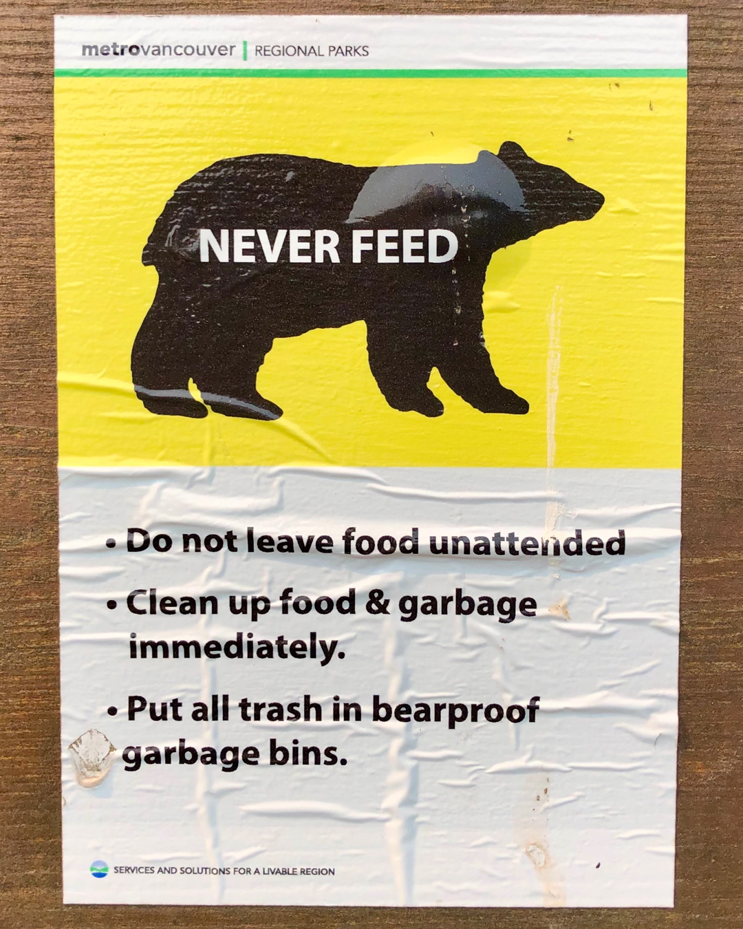 Dans la forêt vancouverite, on croise souvent des panneaux de mise en garde : ici, c'est le pays des ours